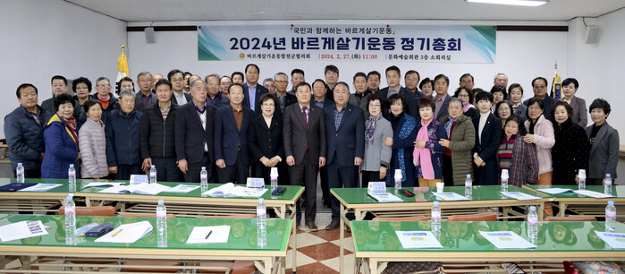 이날 정기총회에서는 바르게살기운동합천군협의회를 위해 헌신적인 노력을 한 임원에 대한 감사장 수여 및 신임 위원장에게 인준장을 수여했다. 또 이웃돕기 성금으로 200만원을 기탁하고, 2023년 사업실적과 결산보고, 2024년 사업계획과 예산안에 대한 의결과 선출직 임원(협의회장) 선출을 진행했다.
