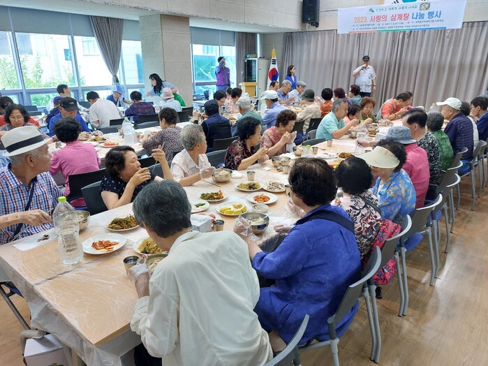 녹번동 새마을부녀회에서는 바쁜 일정 속에서도 정성껏 음식을 준비해 삼계탕과 과일, 떡 등을 어르신들에게 대접하는 한편 거동이 불편해 행사장에 나오기 힘든 독거 어르신들을 위해서 삼계탕을 정성껏 포장해 안전하게 전달해다.