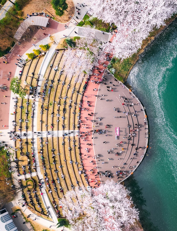 | ▲ 석촌호수에서 벚꽃 구경하는 주민들. (사진=송파구청 제공) |