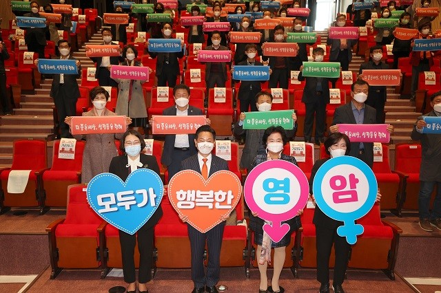 [영암=정찬남 기자] 전남 영암군은 지난 10일 한국트로트가요센터에서 여성단체회원과 기관·단체장 100여 명이 참석한 가운데 ‘더 좋은 세상, 성평등을 향해‘라는 주제로 2021년 영암군 양성평등주간 기념행사를 개최헸다.