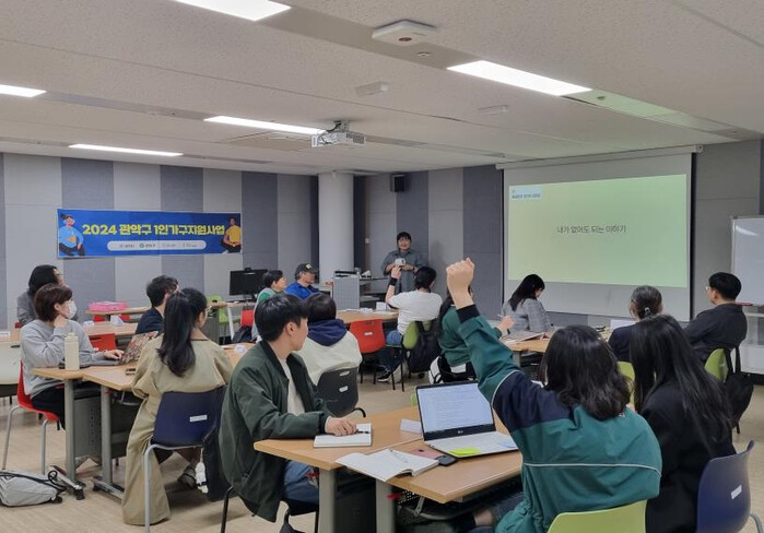 | ▲ 1인가구 교육 및 여가 활동 모습(에쎄이쓰기). (사진=관악구청 제공) |