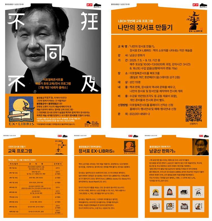 이번 프로그램은 남궁산 작가와 함께 책과 판화, 장서표의 역사와 문화를 배우고 직접 나만의 장서표, 장서인을 제작해 보며, 수강생들은 만든 작품으로 전시회까지 개최하게 된다.