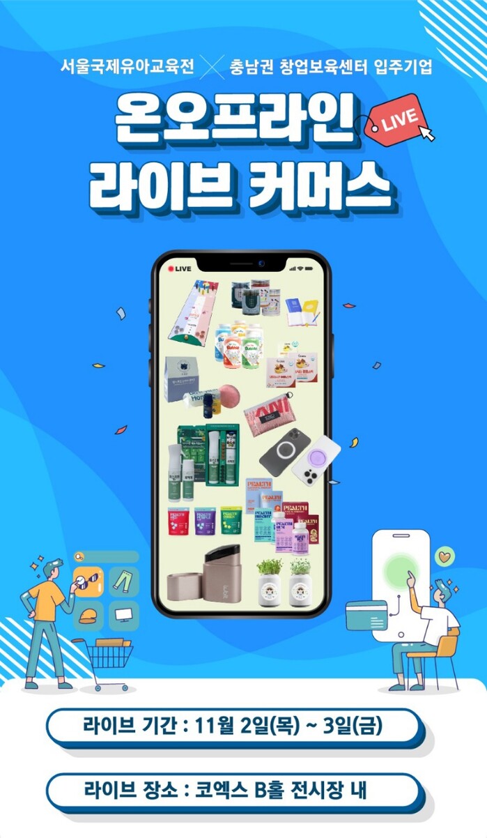 네이버 쇼핑라이브를 통해 송출될 라이브 커머스는 11월 2일(목) 오전 10시를 시작으로 11월 3일(금) 오후 5시까지 코엑스 B홀 전시장 내에서 이어진다. 3년 동안 충남권 라이브 커머스 제품만 100회 이상 진행해 온 성수련, 윤도경 라이브 커머스 전문 쇼호스트가 제품을 소개한다.