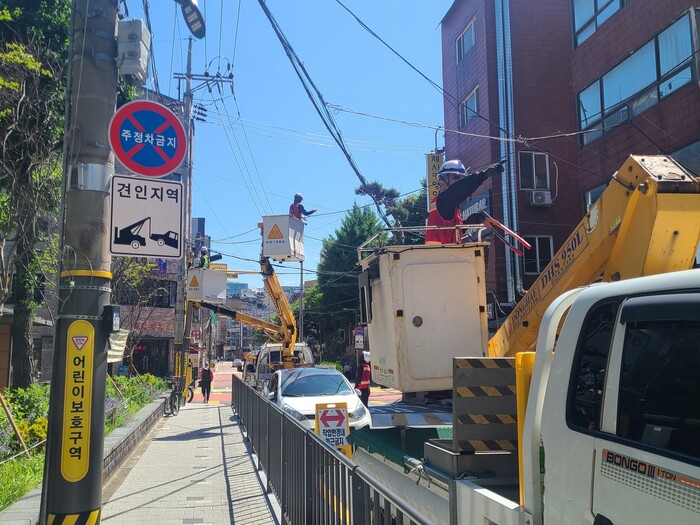 5일 구에 따르면 지금까지 공공시설물과 교통안전 분야에 집중됐던 이 인력을 올해 처음으로 불량 공중선 정비에 활용하겠다는 계획이다.