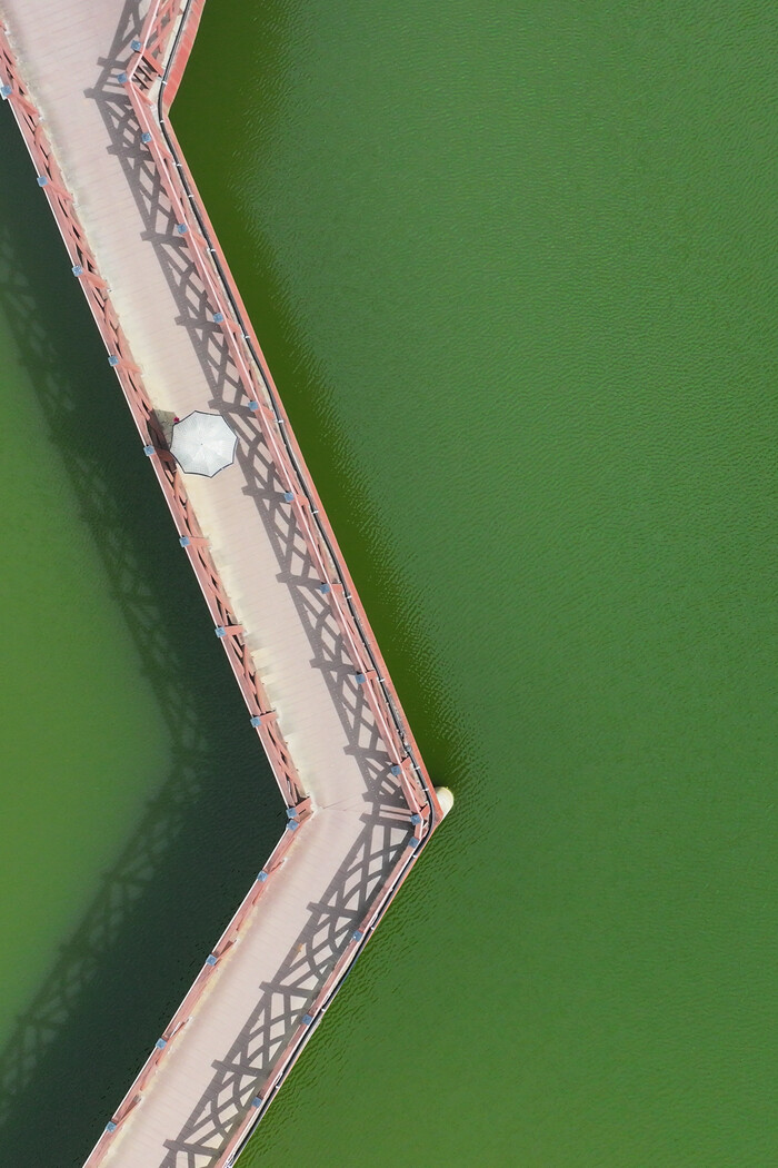 전국 대부분 지역에 폭염 특보가 내려진 31일 오전 광주 서구 풍암호수에 녹조가 발생해 물빛이 초록색을 띠고 있다.