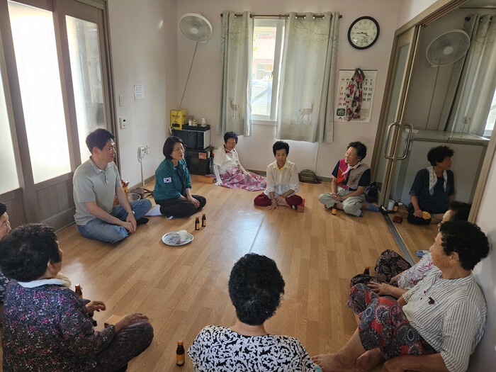 이번 방문은 막바지 폭염이 지속되는 상황에서 어르신들의 온열 질환 예방과 안전을 확인하고, 무더위 쉼터인 경로당 이용에 불편함을 없는지 점검하기 위해 진행됐으며, 폭염 대비 행동 요령을 안내하며 남은 여름을 건강하게 보낼 것을 당부했다.