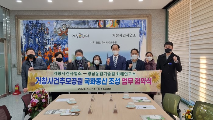 거창사건사업소(소장 조정순)는 14일 경상남도 농업기술원 화훼연구소와 사계절 꽃이 피어 있는 공원 조성을 위한 국화동산 업무협약식을 체결했다.