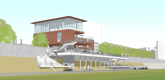 뿐만 아니라 건물이 천변 자전거 도로와 맞닿아 있는 만큼, 기존 바이크라운지의 기능을 살린 ‘자전거 거치대’를 주변에 배치하고, 2층에는 자전거족과 마라토너를 위한 샤워실과 라커룸을 설치해 쾌적한 이용환경을 조성할 예정이다.