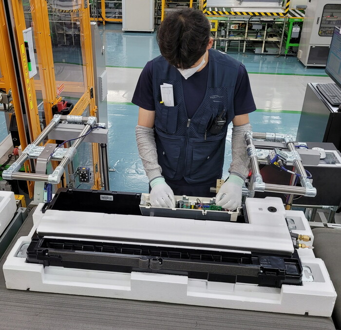 | ▲ 광주광역시 광산구 하남산단 6번로에 위치한 삼성전자 광주사업장에서 직원들이 '시스템 에어컨'을 생산하는 모습 (사진=삼성전자 제공) |