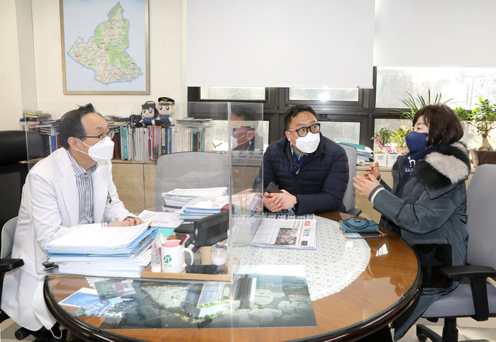 | ▲ 최근 서대문구 재난안전대책본부를 찾은 이종석·안한희 의원이 보건소 관계자와 현재 현장 상황 등에 대해 이야기를 나누고 있다. (사진제공=서대문구의회) |