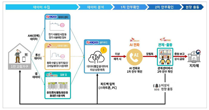‘AI 안부든든 서비스’는 대상자 가정에 별도의 기기 설치 없이 전력 사용과 통신, 돌봄앱으로 위기 신호를 감지해 신속하게 대응한다.