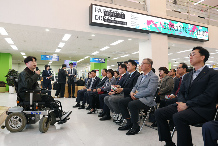 [시민일보 = 이대우 기자] 서울 강남구(구청장 조성명)가 장애인 예술가의 작품을 블루투스 스피커 기능이 있는 액자로 만들어 전시·판매하는 ‘페인터스 드림’ 전시회 개막 행사를 18일 구청에서 개최했다.