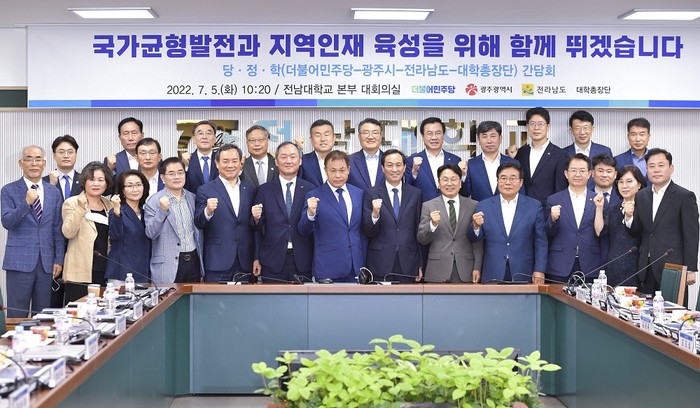 이어 “광주·전남 상생 1호 정책인 300만 평 반도체특화단지 조성의 핵심도 인재양성에 있다”며 “더불어민주당과 대학, 광주시, 전남도가 함께 힘을 모아 지역이 균형 있게 발전할 수 있는 방안을 마련하고 대응하자”고 말했다.