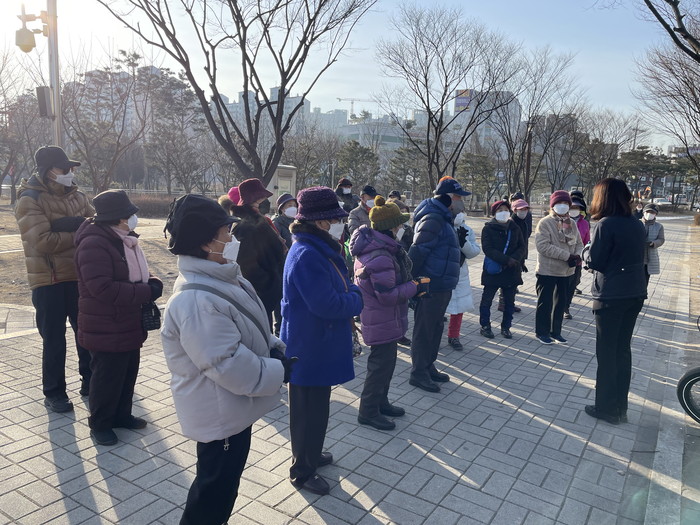 경기 양주시 회천2동 행정복지센터는 지난 7일부터 노인일자리와 사회활동 지원 사업인 ‘거리환경개선 사업’을 시작했다. 사진은 사업에 참여하는 노인들이 설명을 듣고 있는 모습. (사진제공=양주시청)