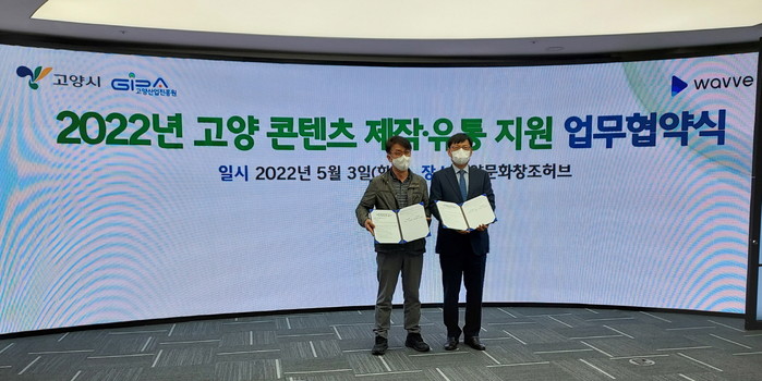 [고양=이기홍 기자] 고양산업진흥원(이하 진흥원)은 5월 3일 고양문화창조허브에서 콘텐츠웨이브㈜(웨이브, wavve)와 업무 협약식을 개최하였다.