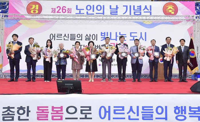 [광주=정찬남 기자] 광주광역시는 제26회 노인의 날을 맞아 7일 오전 빛고을체육관에서 어르신 1000명과 함께하는 기념행사를 개최했다.
