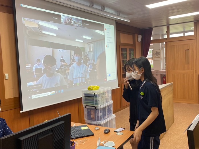 한편, 다음교류는 화,금 방과후 수업시간(16:00~16:45)중에 상세일자 별도 논의 후 실시할 예정이며, 12월까지 그룹별 영상발표 및 자유채팅, 지역 문화 소개 등 총 6회에 걸쳐 진행할 예정이다.