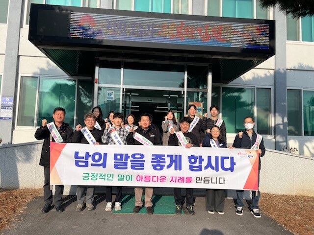 [김천=박병상 기자] 경북 김천시 지례면 행정복지센터(면장 박용국)는 Happy Together 김천운동 ‘친절’을 실천하고자 직원 13여 명이 참여한 가운데 바른 말 고운 말 쓰기 캠페인을 개최했다.
