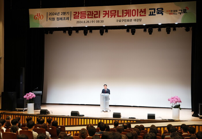 [시민일보 = 이대우 기자] 구로구(문헌일 구청장)가 최근 구로구민회관 대강당에서 2024년 2분기 직원 정례조례를 개최했다.
