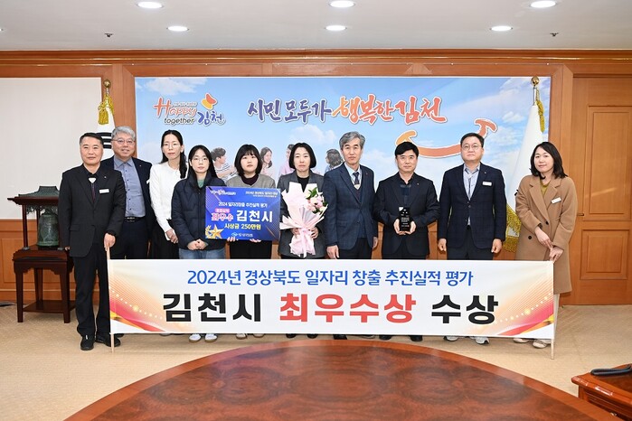 [김천=박병상 기자] 김천시는 지난 23일(월) 경상북도에서 주관하는 「2024년 일자리 창출 추진실적 평가」에서 최우수상을 수상하여 지난 8월 전국 지자체 일자리 대상(우수상) 5년 연속 수상에 이어 경상북도 평가에서도 일자리 창출 최우수기관으로 선정되며 명실상부 “일자리가 풍부한 경제도시”의 위상을 다시 한번 입증했다.