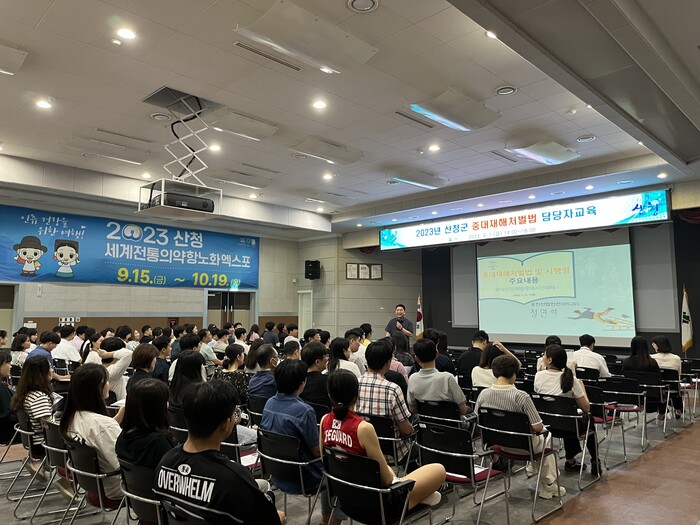 산청군 수행사업 및 소관시설물 담당자 등 140여 명을 대상으로 실시한 교육에서는 안전보건교육 전문기관 외부강사를 초빙해 중대산업재해와 중대시민재해 기본 교육이 이뤄졌다.