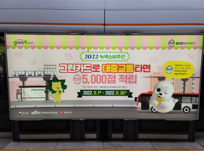 BC카드는 환경보호에 관심이 많아지는 요즘, 개인이 환경보호에 동참할 수 있도록 ‘BC 그린카드’를 활용한 캠페인을 진행한다. 캠페인은 오는 30일(수)까지 11월 한달간 진행되며 BC그린카드로 대중교통을 월 30,000원 이상 이용할 경우, 에코머니 5000점이 적립된다.