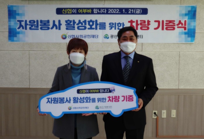 [시민일보 = 여영준 기자] 신협사회공헌재단(이하 재단)이 지난 21일 광산구자원봉사센터에서, 자원봉사 및 사회복지서비스 활성화를 위해 광산구자원봉사센터에 차량을 전달했다.