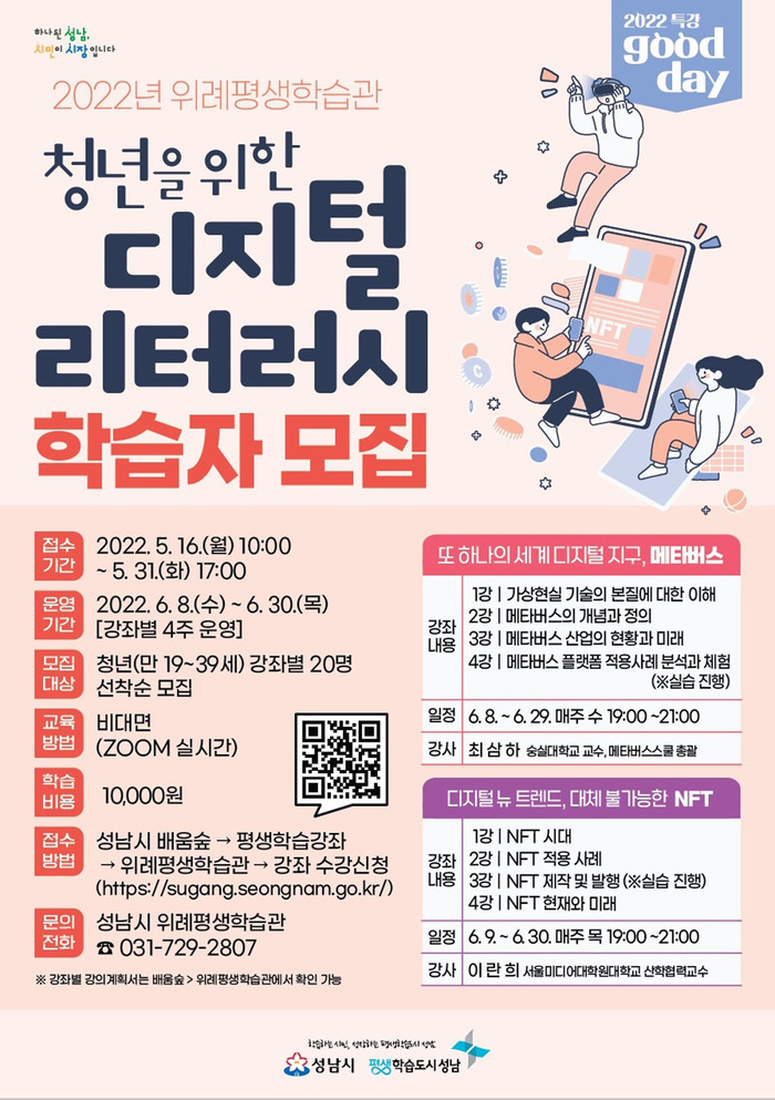 만 19세~39세 청년들에게 디지털 시대의 흐름 파악과 관련 기술 활용 능력을 높이는 기회를 제공하기 위해 마련한 디지털 리터러시(문해력) 학습 프로그램이다.