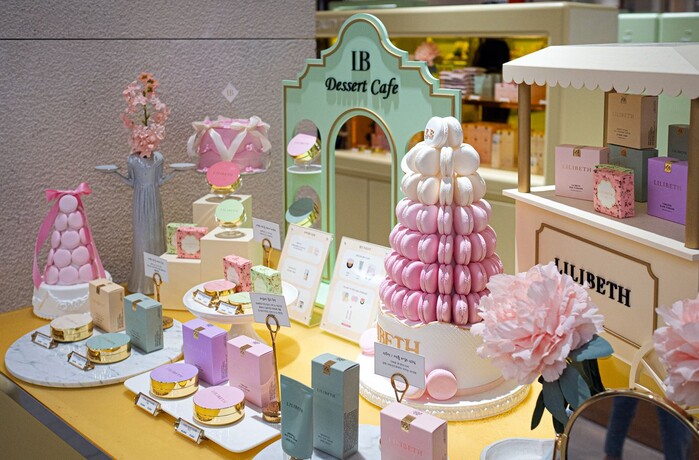 릴리베스는 소비자들이 브랜드만의 독특한 감성을 느낄 수 있도록 디저트 카페를 콘셉트로 하여 제품의 톤 컬러에 맞는 마카롱과 디저트 소품들로 테이블 공간을 준비했다.