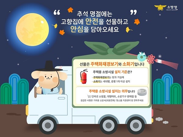 박유진 서장은 “주택용 소방시설은 화재 초기 인명ㆍ재산피해 저감에 큰 역할을 할 수 있다”며 “이번 추석에는 주택용 소방시설을 선물해 풍요롭고 안전한 추석을 맞이하길 바란다”고 말했다.