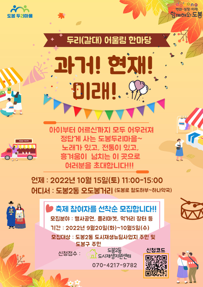 오언석 구청장은 “지역 주민 화합의 장을 마련해주신 도봉2동 두리마을 주민협의체 여러분께 감사드린다. 많은 분들께서 즐거운 축제의 장에 오셔서 함께해주시길 부탁드린다”고 말했다.