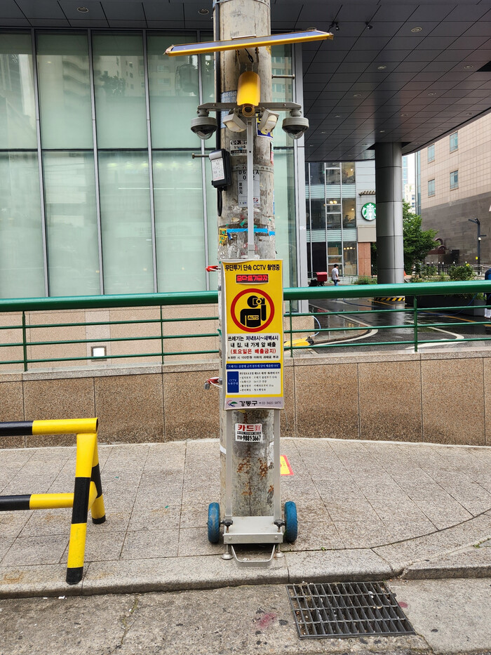 | ▲ 빗물받이 인근 이동식 폐쇄회로(CC)TV. (사진=강동구청 제공) |