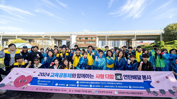 [인천=김형만 기자] 인천시교육청은 10월 19일 학익동 인근에서 인천광역시청소년활동진흥센터와 함께 ‘교육공동체와 함께하는 사랑더함 연탄배달’ 봉사활동을 진행했다고 밝혔다.