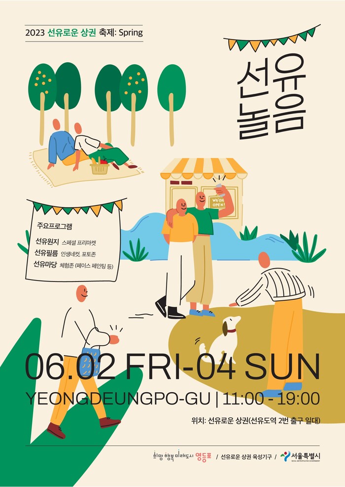 [시민일보 = 여영준 기자] 서울 영등포구(구청장 최호권)는 오는 2~4일 3일간, 선유로운 상권 일대(선유도역 2번 출구)에서 2023 선유로운 축제 ‘선유놀음’을 개최한다고 밝혔다.