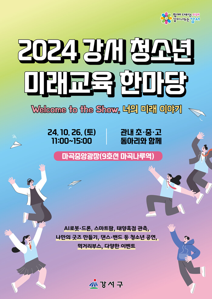 [시민일보 = 박소진 기자] 서울 강서구(구청장 진교훈)가 오는 26일 오전 11시~ 오후 3시 마곡중앙광장에서 ‘2024 강서 청소년 미래교육 한마당’을 개최한다.