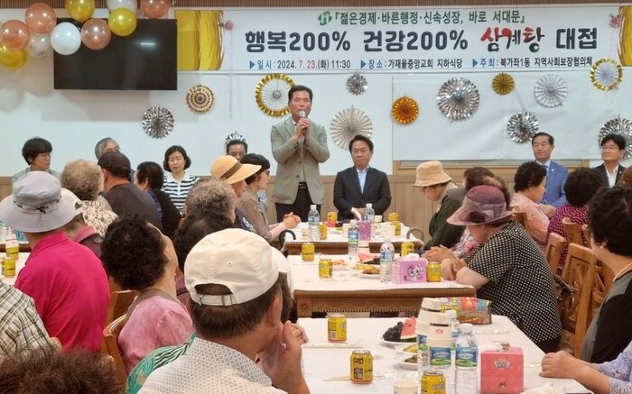 [시민일보 = 이대우 기자] 서울 서대문구 북가좌1동은 최근 동 지역사회보장협의체가 관내 취약계층 노인을 위한 ‘행복200% 건강200% 삼계탕 대접’ 행사를 추진했다고 밝혔다.