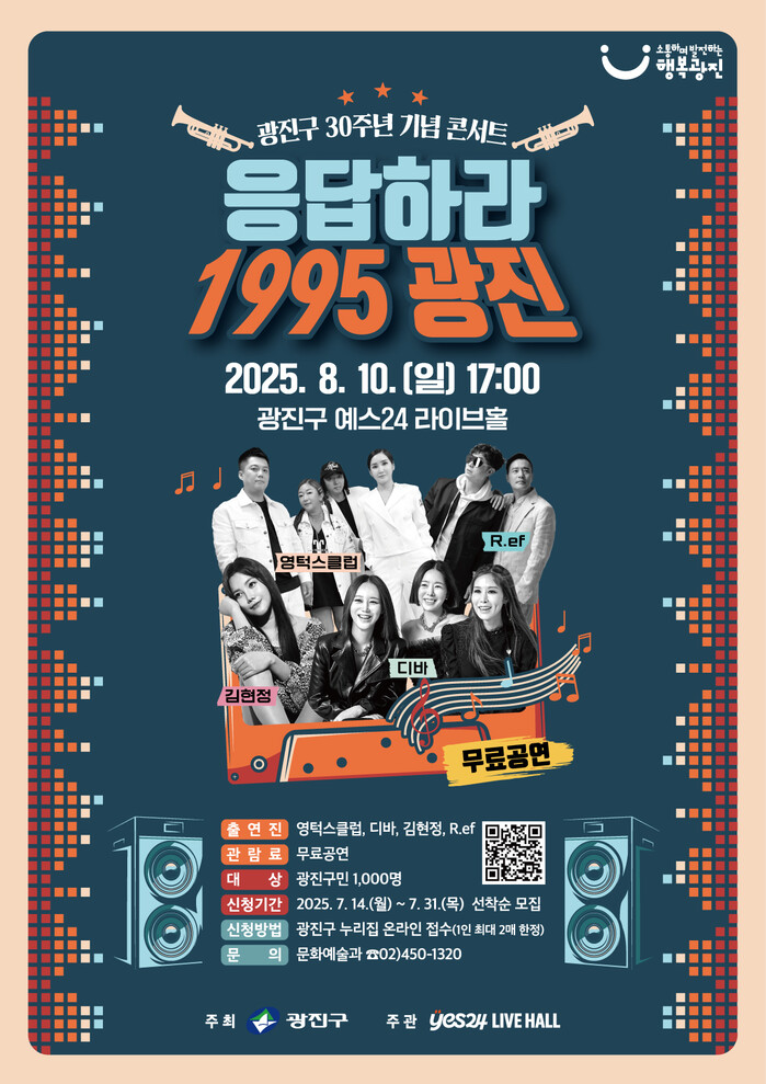 [시민일보 = 여영준 기자] 광진구(구청장 김경호)가 오는 8월10일 광장동 예스24 라이브홀에서 ‘응답하라 1995 광진’ 콘서트를 개최한다.