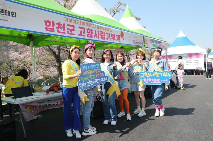 또 고향사랑기부제 홍보단(합천고향이)과 담당공무원은 고향사랑기부제의 취지를 설명하고 기부 혜택 및 답례품 종류를 안내하는 등 고향사랑기부제를 알리기 위한 홍보 활동을 진행했다.
