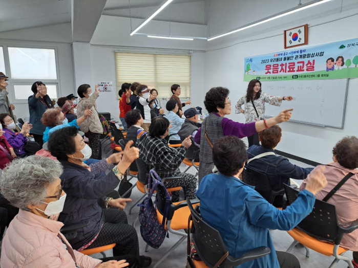 | ▲ 수유3동 우리동네 돌봄단의 ’웃음치료교실‘. (사진=강북구청 제공) |