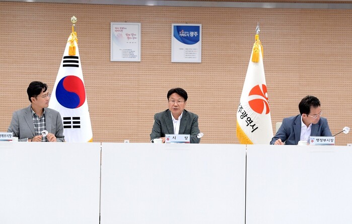 | ▲ 강기정 광주광역시장이 26일 오전 시청 중회의실에서 열린 '제3차 재정전략회의'를 주재하고 있다./광주광역시 제공 |