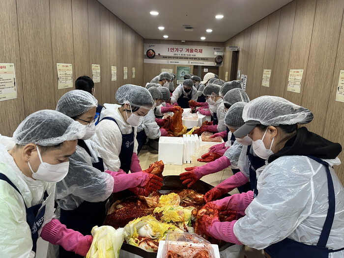 만 40세에서 64세 사이의 중장년 1인 가구 45명이 이번 프로그램을 통해 혼자서는 하기 어려운 김장을 하고, 김치와 수육을 함께 먹으면서 새해 소망과 올 한 해 아쉬웠던 점에 대해 소통하는 시간을 보냈다.