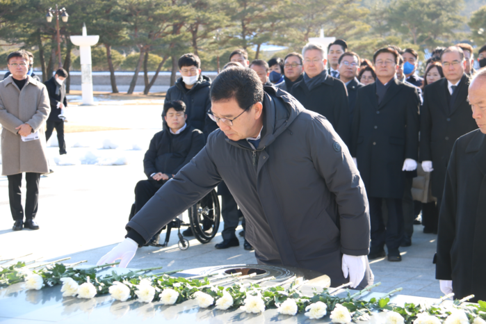 [남악=황승순 기자]더불어민주당 전남도당(위원장 신정훈)은 계묘년 새해 첫 공식일정으로 2일 오전 10시 20분 국립 5.18 민주묘지를 찾아 합동참배식을 가졌다.