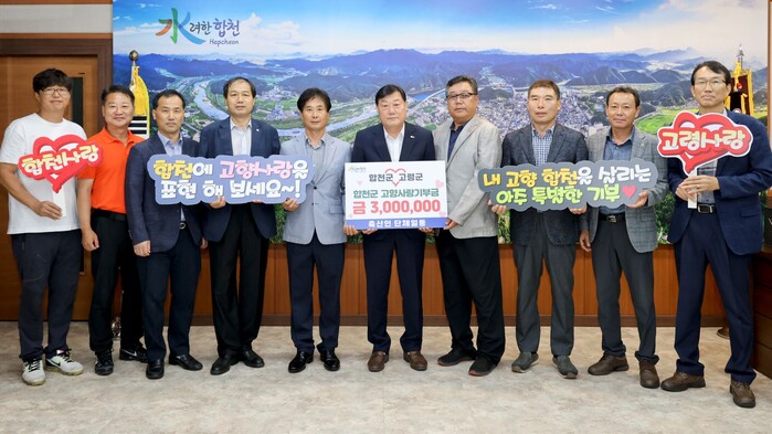 김윤철 합천군수는 “합천군을 위해 따뜻한 마음을 전해준 축산인 단체장분들에게 감사드린다”며 “이번 기부를 통해 합천군 고향사랑기부제가 더욱 활성화될 것으로 기대된다”고 말했다.