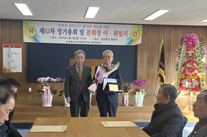 박필숙 야로면장은 “새로운 분회장 취임을 축하드리며, 앞으로도 어르신들을 위한 다양한 노인복지 정책을 추진할 수 있도록 최선을 다하겠다”고 말했다.