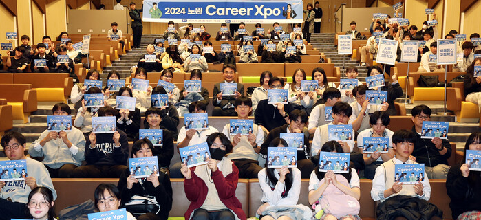 오승록 서울 노원구청장이 최근 2024년 특성화고 직무역량 페스티벌에 참석한 가운데, 학생들은 직무컨설팅 및 다양한 프로그램을 통해 흥미와 적성에 맞는 일을 찾고 취업역량을 강화할 수 있는 체험을 진행했다. 사진은 오 구청장이 페스티벌에 참석해 기념 촬영하는 모습. (사진=노원구청 제공)