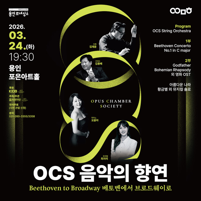 [용인=오왕석 기자] 용인문화재단은 오는 3월 24일 용인포은아트홀에서 오퍼스 체임버 소사이어티(Opus Chamber Society, 이하 OCS)와 공동으로