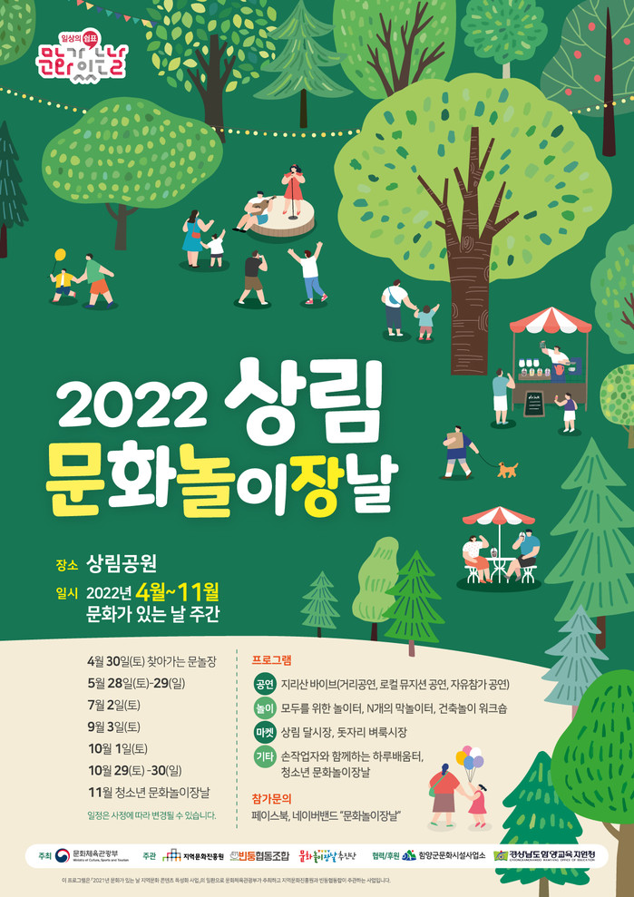함양군은 빈둥협동조합과 문화놀이장날추진단(김찬두)에서 주관하는 ‘상림 문화놀이장날’이 오는 28일과 29일 양일간 상림공원에서 열린다고 밝혔다.