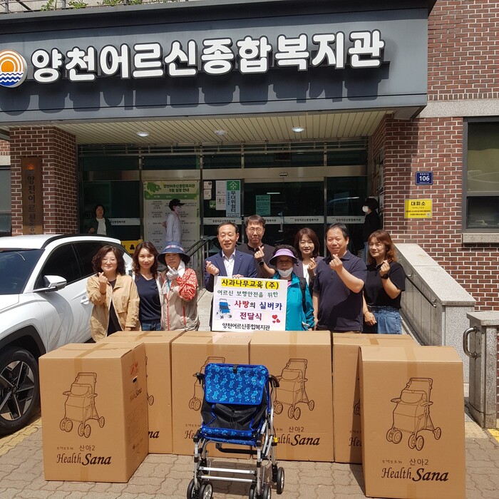 [시민일보 = 이대우 기자] 서울 양천어르신종합복지관은 최근 사과나무학원으로부터 100만원 상당의 실버카를 취약계층 어르신에게 지원하는 전달식을 가졌다.