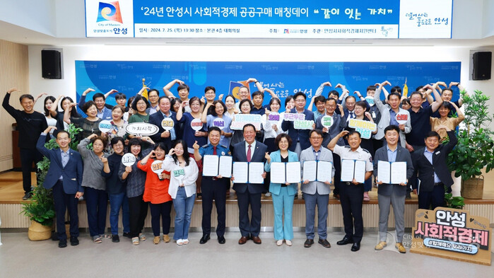 [안성=오왕석 기자] 지난 7월 25일 안성시청 본관 4층 대회의실에서 진행된 “2024년 안성시 사회적경제 공공구매 매칭데이”가 경기도 31개 시군을 대상으로 진행된 2024년 공공구매 우수사례 공모에서 장려상에 최종 선정되었다.