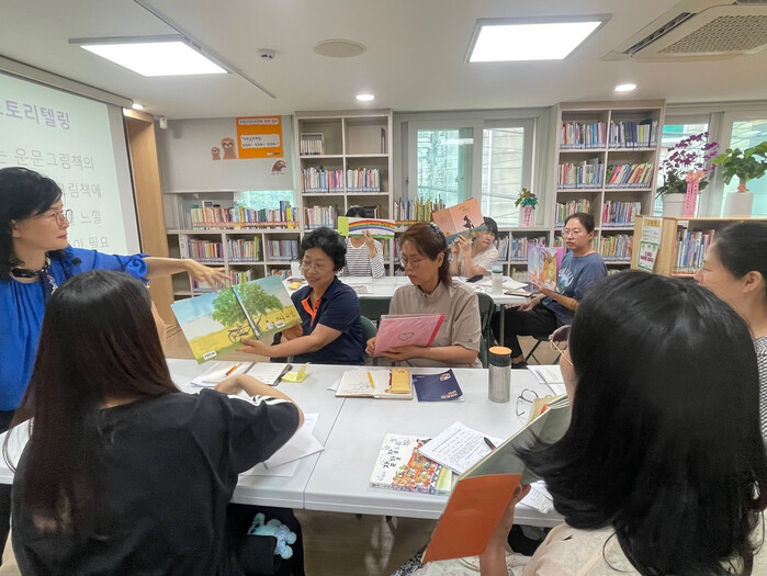 이 과정은 내달 7일까지 매주 화요일과 목요일 오전 10시부터 13시까지 총 8회에 걸쳐 대조꿈나무어린이도서관에서 진행되며 수료 요건 충족 시 민간자격증 취득이 가능하다. 특히 ▲감성 힐링 ▲우화와 민담 ▲생활 공감 이야기 ▲글자 없는 그림책 등 다양한 장르를 주제로 실습 중심의 과정 진행되고 있다.